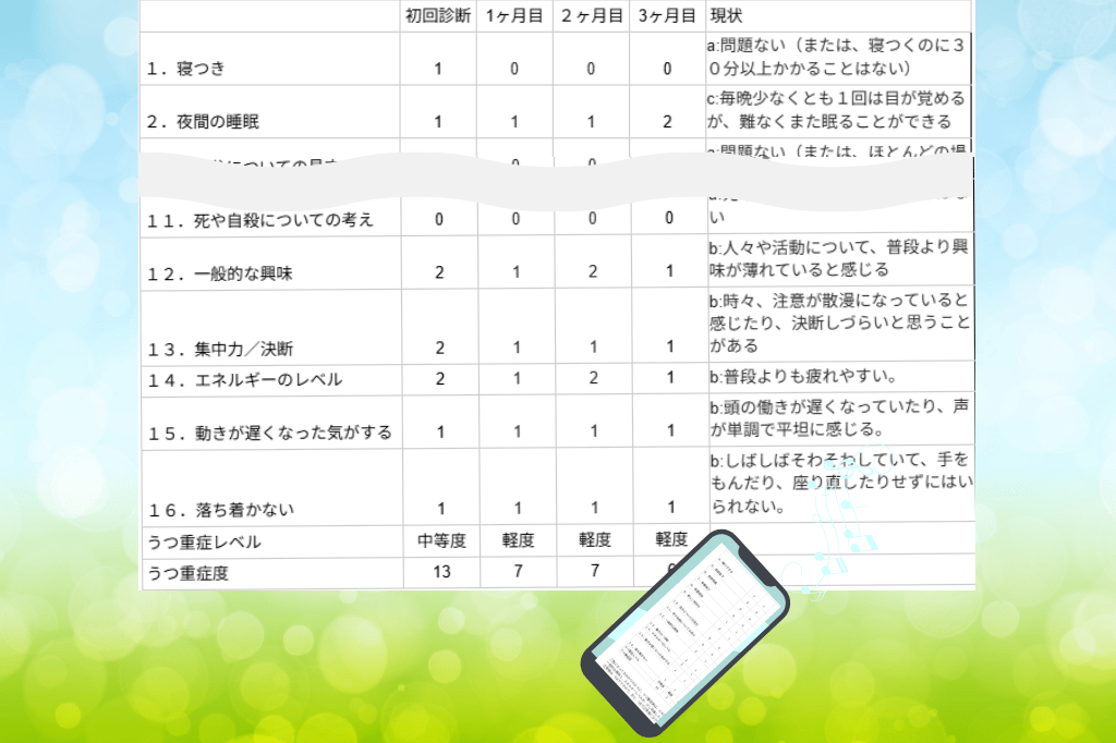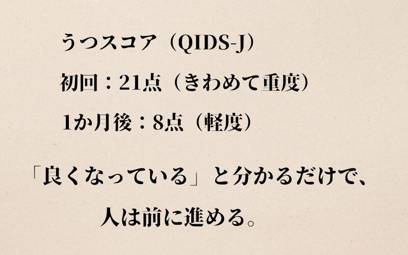 うつの改善には時間がかかります。だからこそ、変化を数字で確認することが大切です。